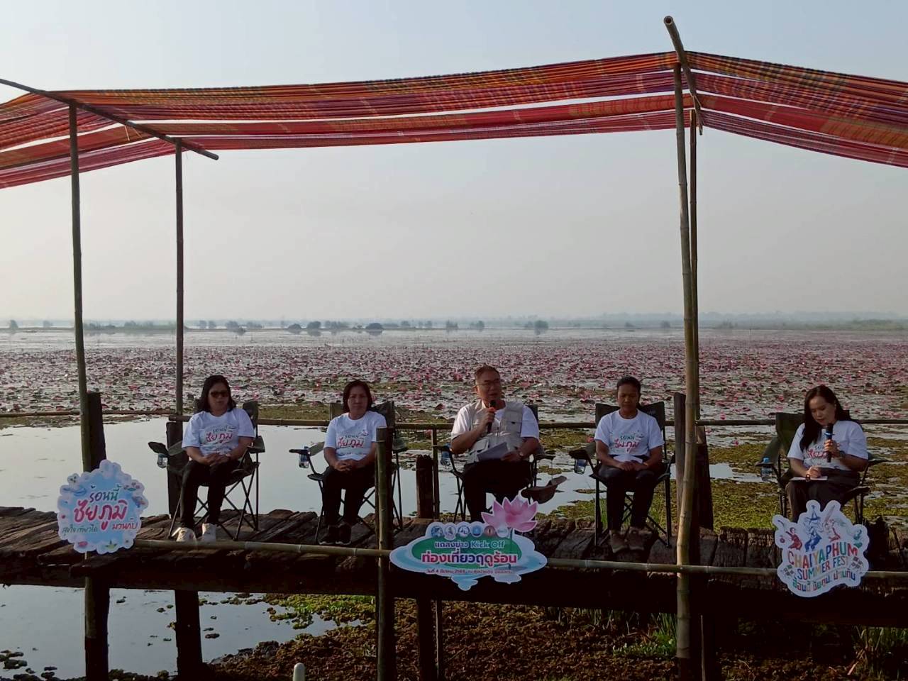นายสมพงษ์ ผิวรักษา นายกองค์การบริหารส่วนตำบลบ้านกอก พร้อมด้วย ข้าราชการ พนักงานองค์การบริหารส่วนตำบลบ้านกอก ได้เข้าร่วมงานแถลงข่าวเปิดตัว Kick off : Chaiyaphum summer fest 2026 “ร้อนนี้ ชัยภูมิสุขใจ เที่ยวได้ ม่วนกุ๊ฟ” ณ สะพานไม้ ทุ่งบัวแดง บึงละหาน ตำบลบ้านกอก อำเภอจัตุรัส จังหวัดชัยภูมิ ในเวลา 08.00 น.โดยมีนายอนันต์ นาคนิยม ผู้ว่าราชการจังหวัดชัยภูมิ นายเชิงชาย ชาลีรินทร์ สส.ชัยภูมิ เขต 2 นางสาววันเพ็ญ หาญเสมอ นายอำเภอจัตุรัส แถลงข่าวต่อสื่อมวลชลเพื่อประชาสัมพันธ์การท่องเที่ยวฤดูร้อนปี 2569