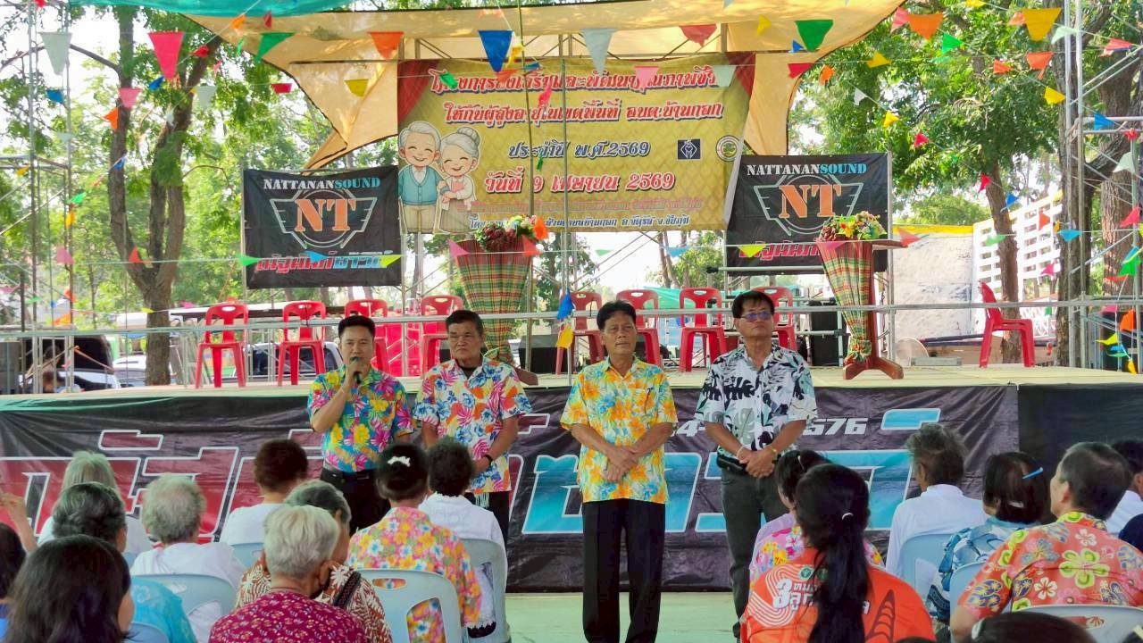 นายสมพงษ์ ผิวรักษา นายกองค์การบริหารส่วนตำบลบ้านกอกกล่าวรายงาน โครงการส่งเสริมและพัฒนาคุณภาพชีวิตให้กับผู้สูงอายุในเขตพื้นที่องค์การบริหารส่วนตำบลบ้านกอก ประจำปี 2569 พร้อมด้วยนายสุทธิศักดิ์ สังข์ทอง ปลัดองค์การบริหารส่วนตำบลบ้านกอก นายสมมิตร รื่นรวย สมาชิกสภาองค์การบริหารส่วนจังหวัดชัยภูมิ เขต 2 หัวหน้าส่วนราชการ ข้าราชการ เจ้าหน้าที่ องค์การบริหารส่วนตำบลบ้านกอก ผู้ใหญ่บ้าน และประชาชนร่วมงาน ณ สำนักงานองค์การบริหารส่วนตำบลบ้านกอก ตำบลบ้านกอก อำเภอจัตุรัส จังหวัดชัยภูมิ