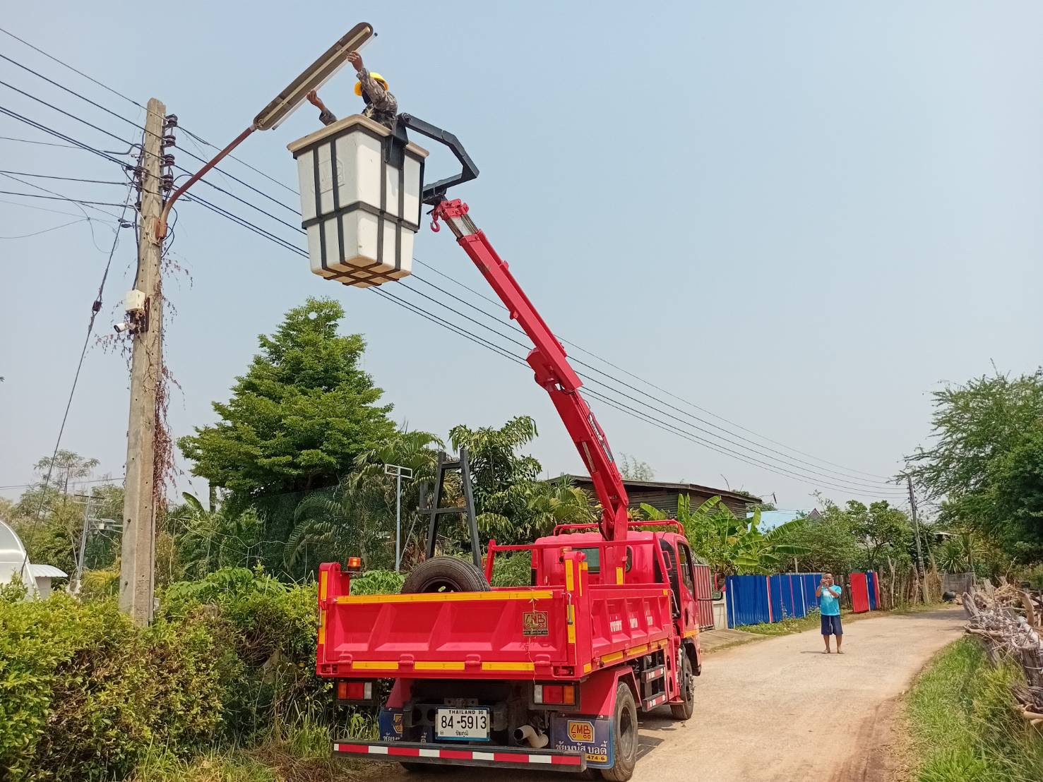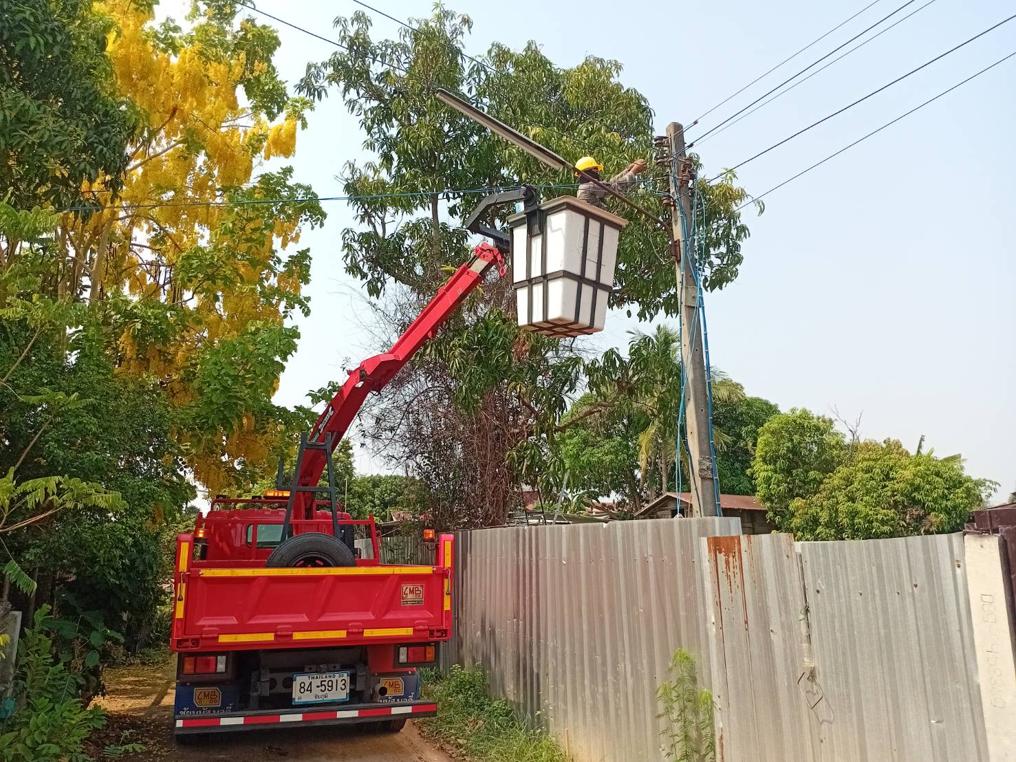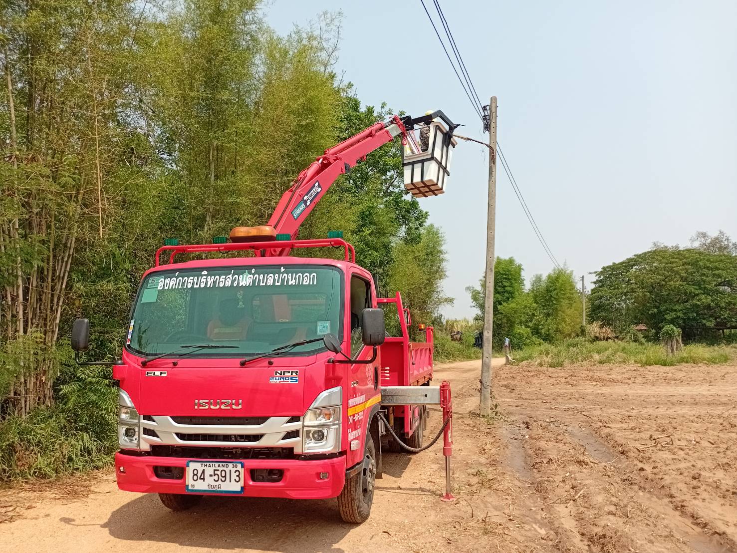 วันที 21 เมษายน 2569 นายสมพงษ์ ผิวรักษา นายกองค์การบริหารส่วนตำบลบ้านกอก มอบหมายให้กองช่าง ออกซ่อมไฟฟ้าสาธารณะ บ้านโนนทองหมู่ที่ 17