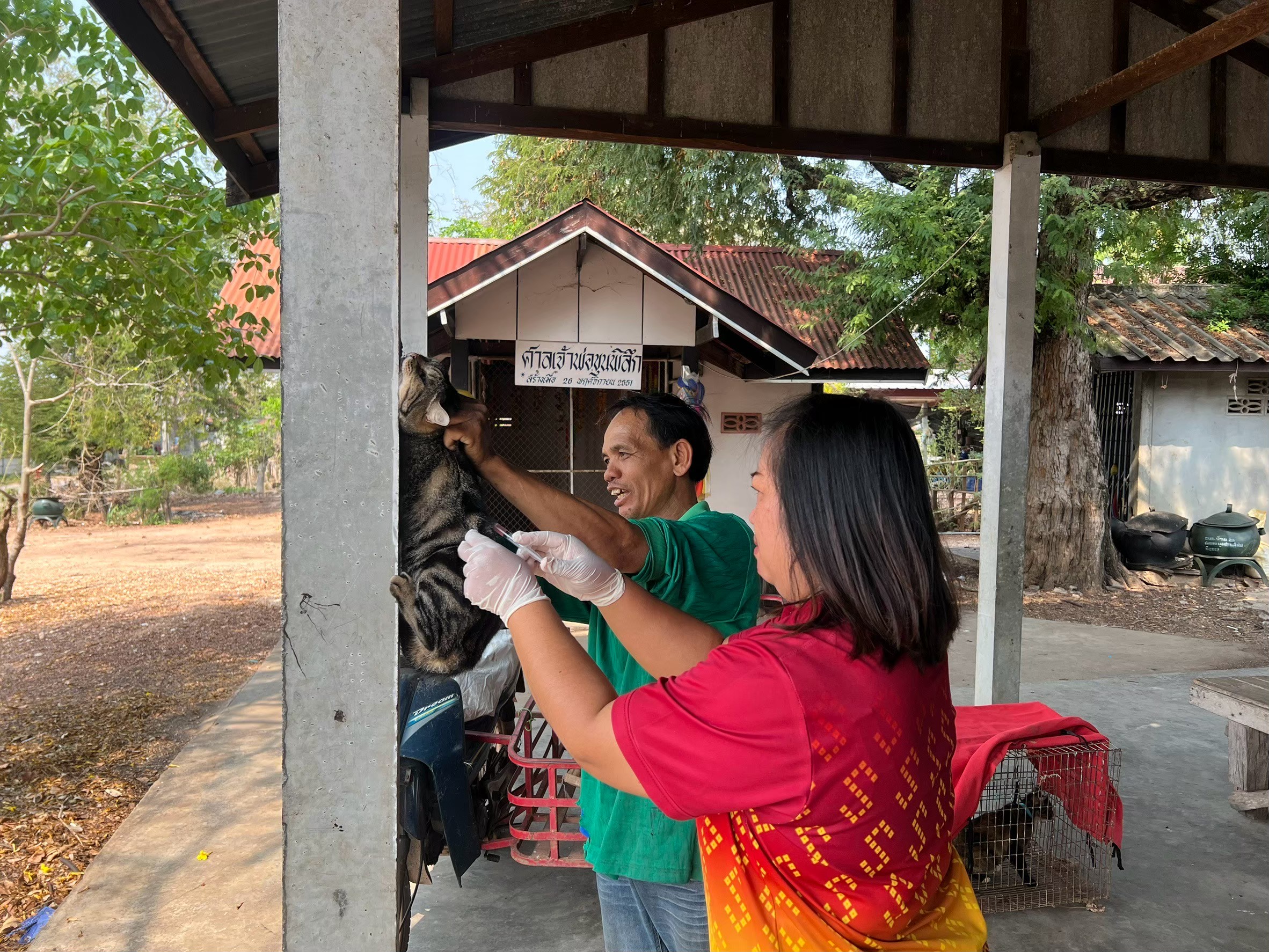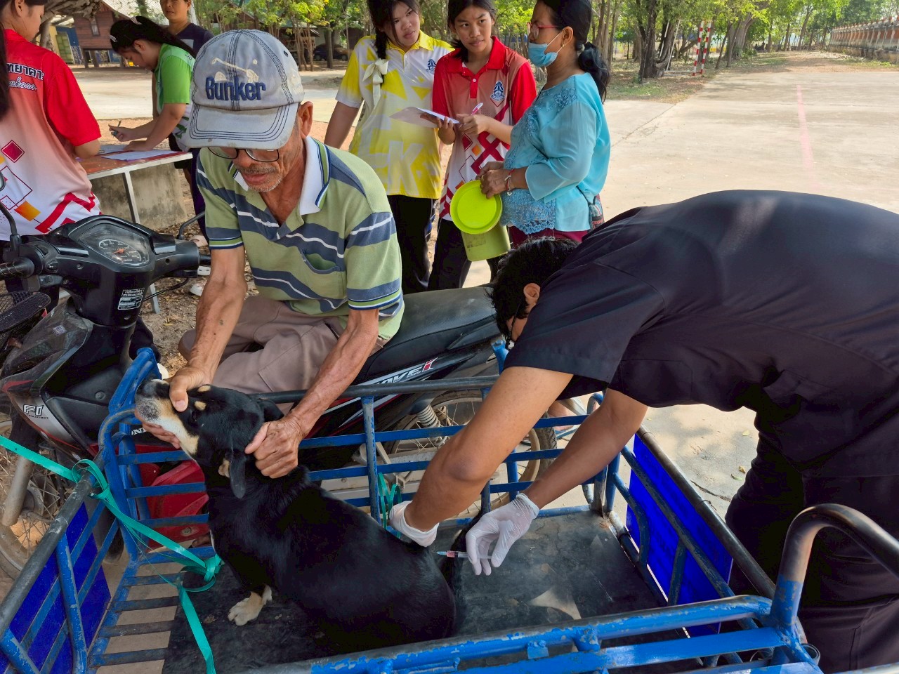 โครงการสัตว์ปลอดโรค คนปลอดภัยจากโรคพิษสุนัขบ้า ตามพระปณิธานศาสตาจารย์ ดร.สมเด็จเจ้าฟ้าฯ กรมพระศรีสวางควัฒนวรขัตติยราชนารี ประจำปีงบประมาณ 2568 โดยกองสาธารณสุขและสิ่งแวดล้อม องค์การบริหารส่วนตำบลบ้านกอก ออกให้บริการฉีดวัคซีนสุนัขและแมวภายในเขตพื้นที่ตำบลบ้านกอก จำนวน 17 หมู่บ้าน ในระหว่างวันที่ 27 มีนาคม ถึง 1 เมษายน 2568 ทั้งนี้ ปศุสัตว์อำเภอจัตุรัสให้ความอนุเคราะห์ร่วมออกให้บริการฉีดวัคซีนให้กับสุนัขและแมว