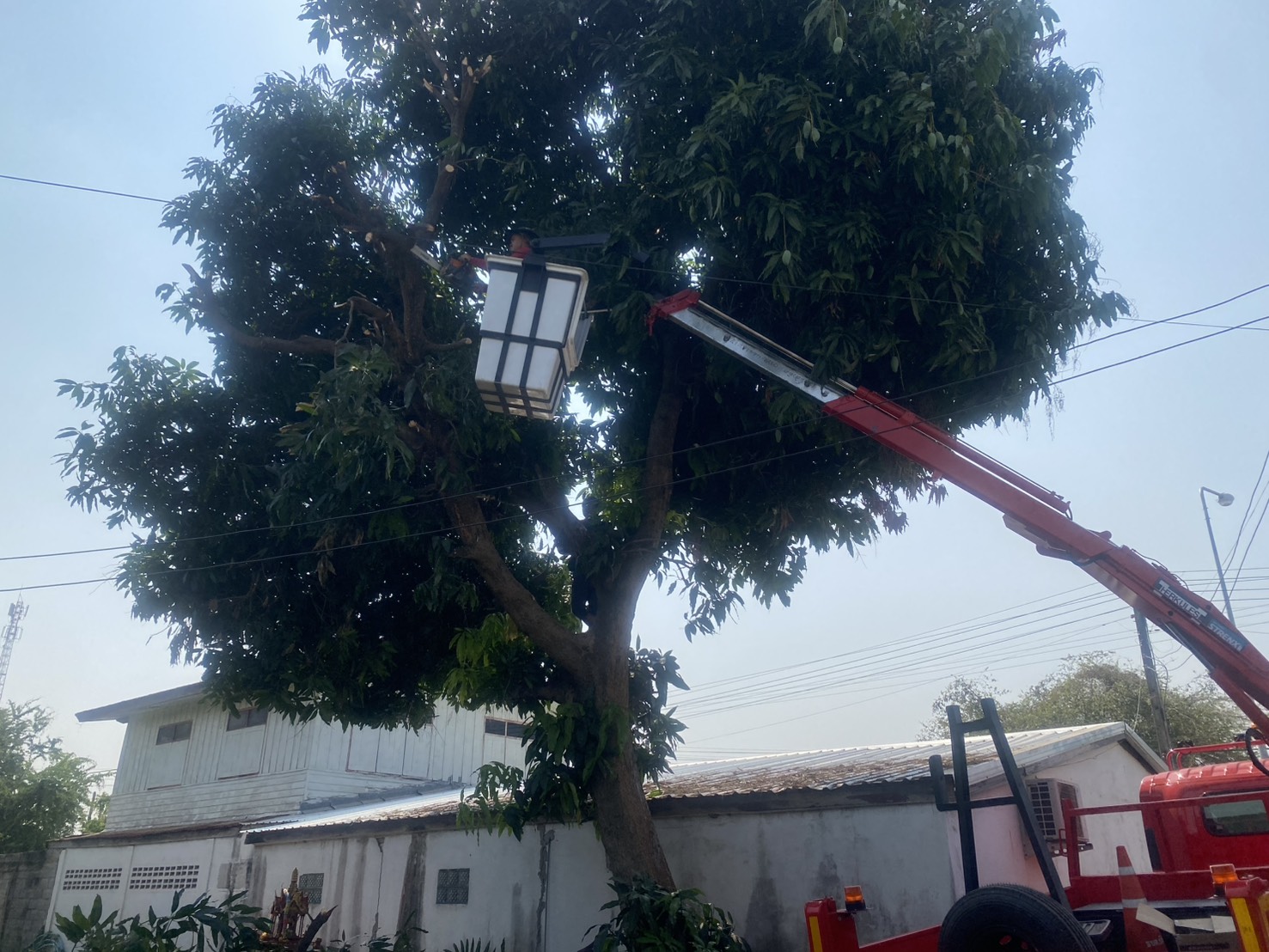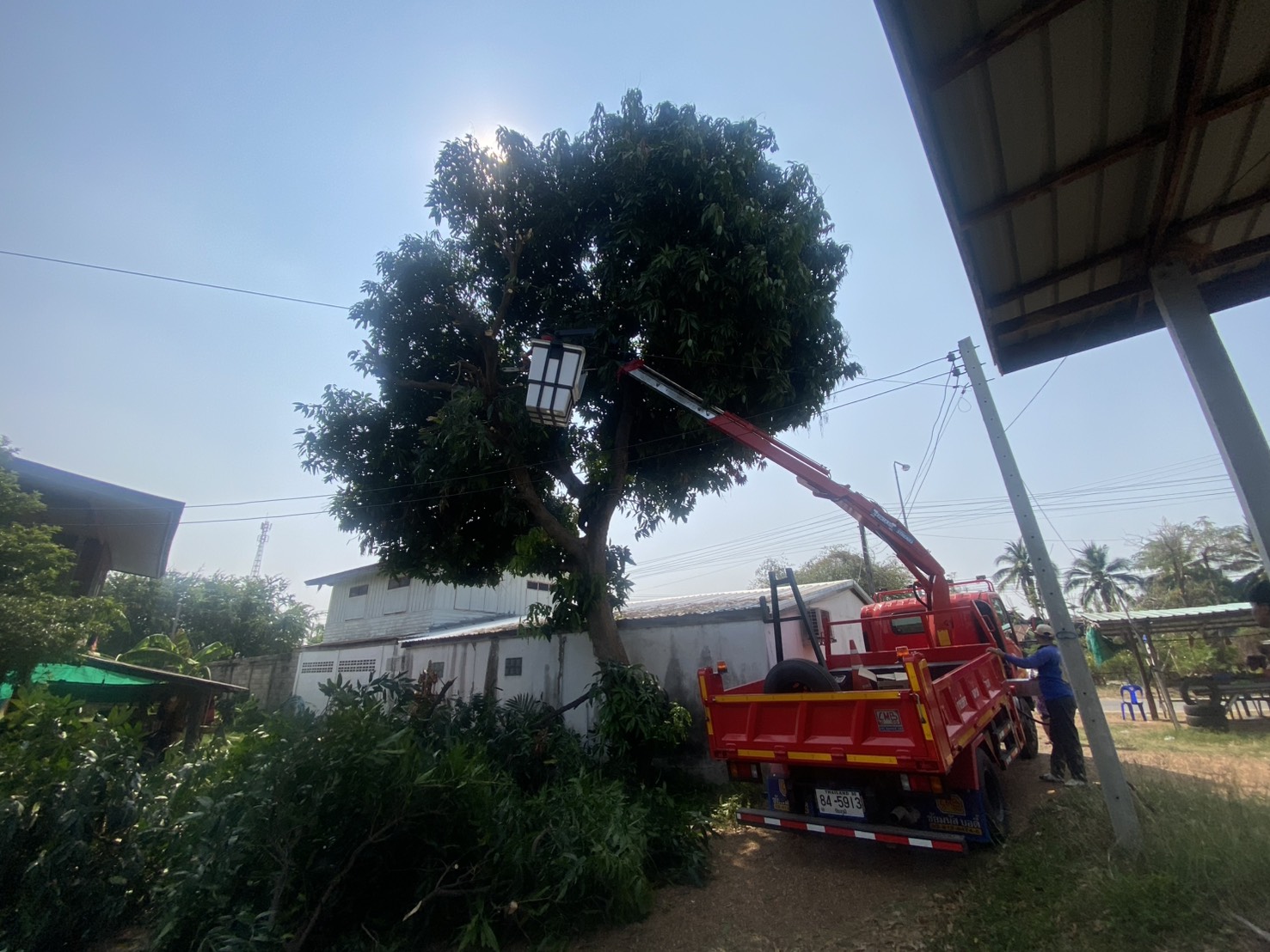 กองช่างและงานป้องกัน ออกตัดกิ่งไม้บ้านสระสี่เหลี่ยม หมู่7 ต.บ้านกอก อ.จัตุรัส จ.ชัยภูมิ